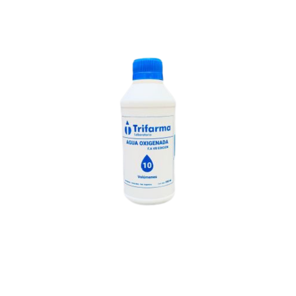 El agua oxigenada 10 volúmenes Trifarma es una solución de peróxido de hidrógeno de uso tópico, empleada como antiséptico y agente de limpieza en entornos domiciliarios y sanitarios. Es utilizada para la higiene de la piel sana y la limpieza de superficies o materiales, según indicación correspondiente.