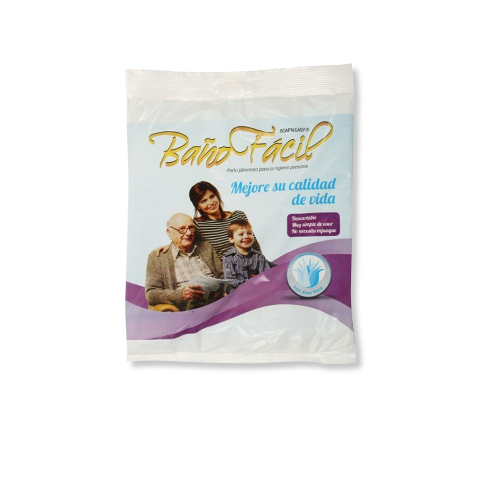 Baño Fácil es un sistema práctico de higiene corporal diseñado para brindar una limpieza completa sin necesidad de enjuague, ideal para personas con movilidad reducida, adultos mayores, pacientes en reposo prolongado, inmovilizados o enyesados.