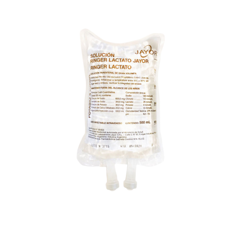 La solución Ringer Lactato 500 ml Jayor es una preparación estéril de uso hospitalario, empleada en entornos clínicos donde se requiere una solución con electrolitos de concentración controlada para distintas aplicaciones profesionales. Se utiliza bajo indicación y supervisión médica dentro de protocolos establecidos en instituciones de salud.